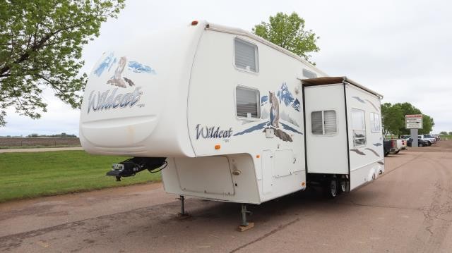 Pull Home. Popular Forest River Wildcat 32QBBS Fifth Wheel Bunkhouse Camper That Sleeps 8 with Power Double Slide outs, Spacious Rear Master Bedroom with Queen Bed Slide out, Entertainment Center, Glass Wardrobe, Drawers, Pantry, Opt. 1/2 Bath, Baggage Door, Entertainment Center, Refrigerator/Freezer, Sofa That Folds Into A Bed and 4 Person Dinette Set, Entertainment Center, Double Kitchen Sink, 3 Burner Range with Oven, Overhead Cabinets, Angle Walk in Shower with Sky Light, Stool Room, Front Bunks with Sofa Flip Up Bunk, Wardrobe/Entertainment Center, Plenty of Storage and Much More. Clean. Ready For Summer Fun!!! *Title Branded Junking Certificate Only*