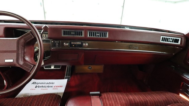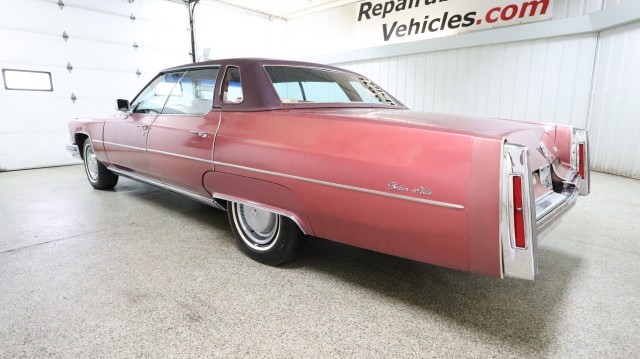 Does Not Have Salvage Title or South Dakota Damage Disclosure. Drive Home. Extremely Hard to Find 1975 Cadillac Sedan DeVille with Vinyl Top, Cloth Seats, 8 Track Player, Power Antenna, Power Locks, Power Steering, Power Closing Trunk, Cold AC and 15" Wheels. Like New Tires. Rust Free Montana Car!! Only 32,478 Original Miles!!! Powerful 500 Cu-In. V8 with Automatic Transmission!!! Great Condition!! Clean Inside and Out!! Sharp!!
