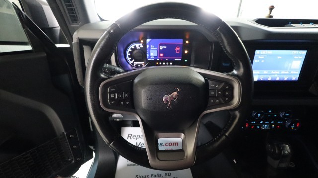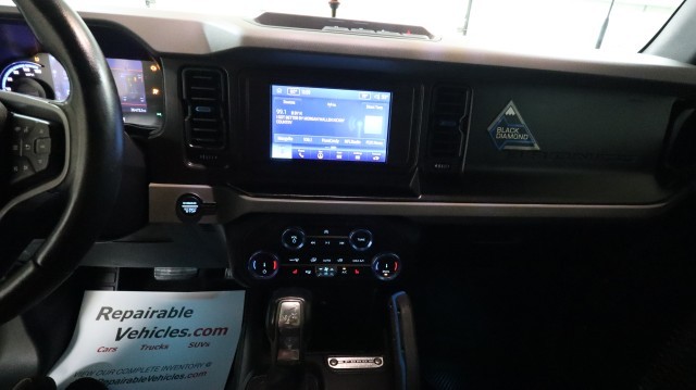 Lot Drives. Front AirBags Ok. Windshield Ok. Popular Bronco Loaded Up with Black Diamond Series, Mid Package, Heated Front Leather Seats, BackUp Camera, BackUp Assist, Navigation, Ford Co-Pilot 360, FordPass, Sync 4, BLIS, Pre Collision Assist, Remote Start, Hard Top, LED Light Bar, General Grabber A/T 365/70R17 Tires and 17" Wheels. Four Wheel Drive. Powerful 2.7L Twin Turbo V6 with 10 Speed Automatic Transmission!! Nice Fix!! Super Clean!! Low Miles!! Sharp! $49,075 Window Sticker.