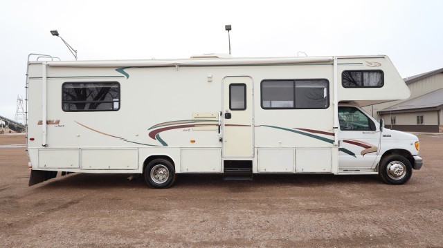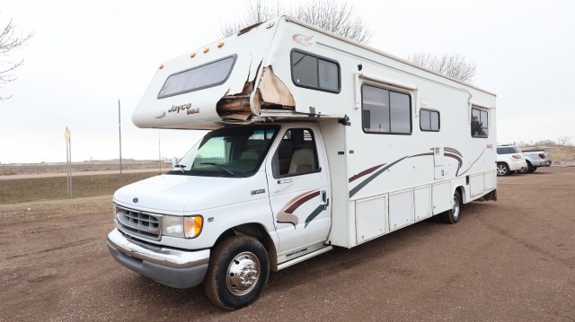 Does Not Have Salvage Title Or South Dakota Damage Disclosure. Drive Home. AirBags Ok. Radiator Still Full. AC Still Charged. Windshield Ok. Extremely Hard to Find Jayco Eagle M-313H 31' Motor Home with Front Leather Seats and Overhead Bunk. Master Bed Includes Queen Bed and Overhead Closet Space. The Kitchen Holds A Deep Duel Sink, Skylight, Panasonic Microwave, Wedgewood 3 Stove Burner and Oven, Norcold Refrigerator and Overhead Freezer, 4 Person U-Dinette, Couch and Coleman-Mach RV Comfort Unit. Bathroom Includes a Walk-In Shower, Toilet, Vanity, Sink and Exhaust Fan. Exterior Power Awnings, Exterior Lighting, Exterior Storage and Onan MicroLite 4000 Generator. Nice Fix! Low Miles! Lots of Storage!! Think Spring or Southern "Snow Bird"!!! $56,051 Window Sticker.