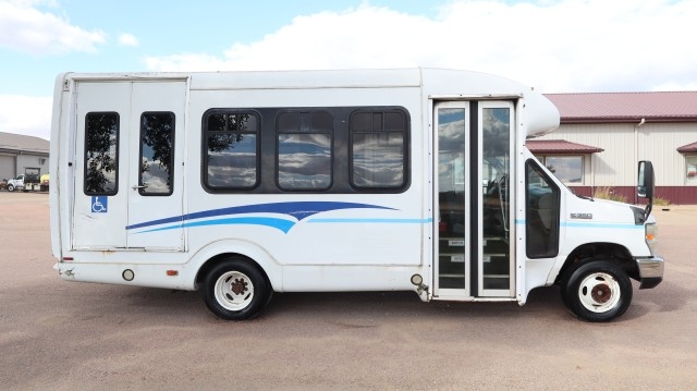 Does Not Have Salvage Title Or South Dakota Damage Disclosure. Possible Drive Home. AirBags Ok. Radiator Still Full. AC Still Charged. Windshield Ok. Extremely Hard to Find E-350 Commercial Cutaway StarTrans Wheelchair Accessible Shuttle Bus with Cloth Driver Seat, Vinyl Rear Seats, 15 Passenger, Power Swing Out Exit Doors, Rear Trans/Air Heating and Air Conditioning, K-Series Public Use Wheelchair and Standee Lift and 16" Wheels. Low Miles! Nice Fix! Sharp! Excellent People Mover!